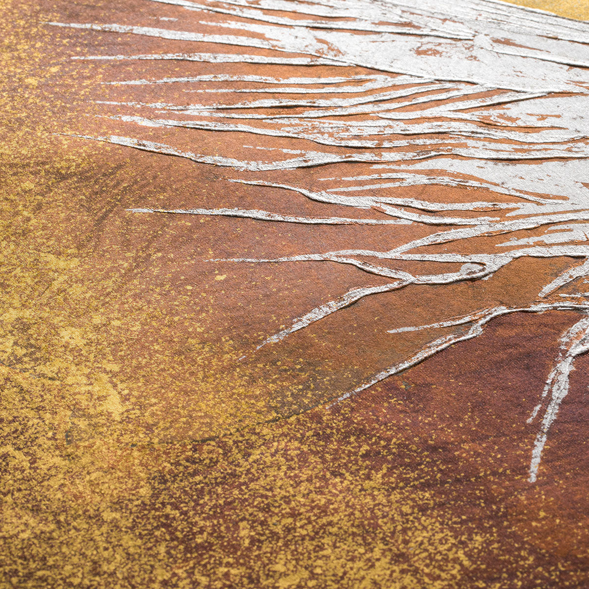 This masterpiece exemplifies the ancient traditional Japanese technique of finishing a picture solely with foil, utilizing variations in type and shape to achieve a stunning visual effect.